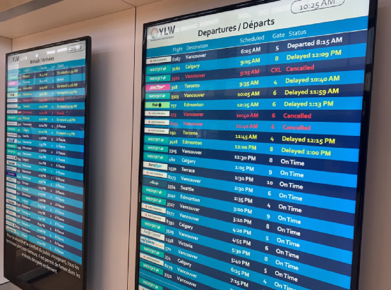位于基隆拿的YLW机场也受到了一定影响,大量早间航班推迟出发,甚至取消。