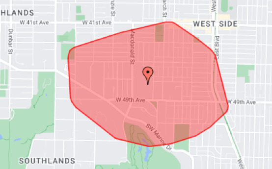 断电的还有南温哥华地区的居民。今早8时45分,下图所示区域的1,742名住户突发断电。