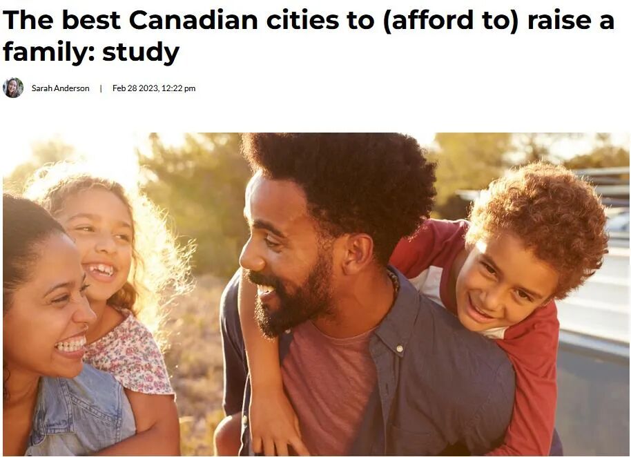 据 Daily Hive 报道,一家以个人财务、投资的数字社区网站 Yore Oyster 发布报告,以一家四口的标准,通过对比城市生活成本、产假与育儿假、托儿开支、通勤时间、中位年龄(median age)、图书馆、生活质量和犯罪率,来评选出全国最适合养家的城市。