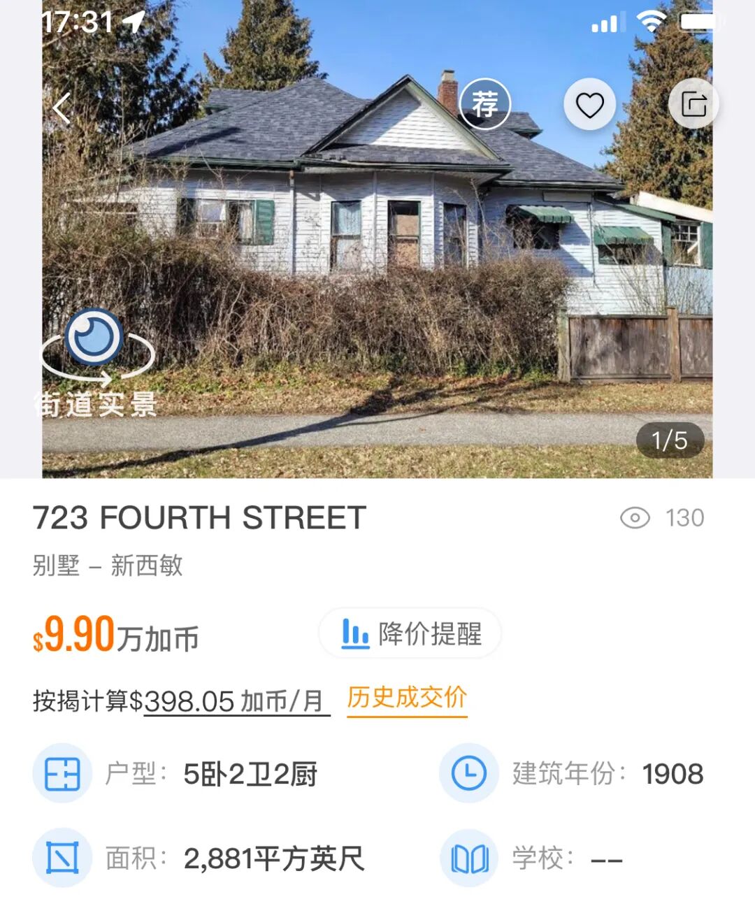 但近日大温的一栋独立屋,却让人乍一看感到意外:它位于新西敏、临近中心区,面积2700平方英尺、有5个卧室,挂牌价居然是9.9万,还不到10万!