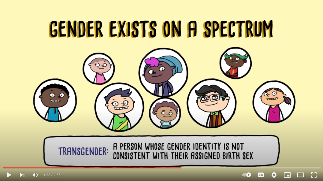 Youtube上有个很火的动画片,大几十万的播放量,讲的就是性别认知,包括一个男性,可以把自己当成一个女性。