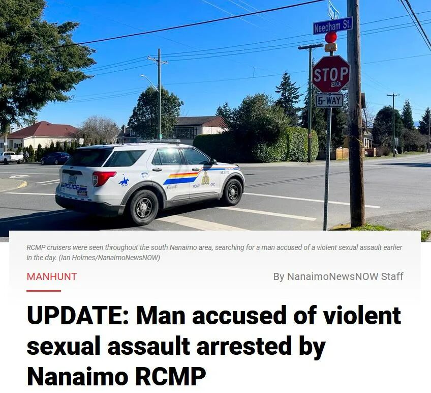 据Nanaimo News Now报道,那乃磨一个女子报警称,她于下午1:20左右在Victoria Rd.,她工作的地方附近,被一个男子从后面掐住她的吼咙,还试图抓住她的胸部。