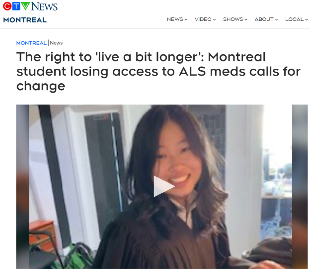 随着她的大学生活进入倒计时,留给她的时间已经不多了。她和她的医生曾经打电话给加拿大卫生部,希望他们能将药物纳入医保,但显然并没有什么成效。
