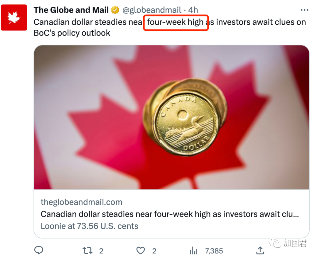 同样,缩表将会有助加元汇率,受此消息影响,加元今天兑美元上涨至近四周新高。