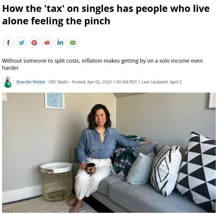 一套出租的房子,价格就是这么多,一个单身人士这么多,一对夫妻也是这么多,站在单身人士的立场,他是多缴了一倍的租金,说这是“单身税”(the singles tax),同意吗?
