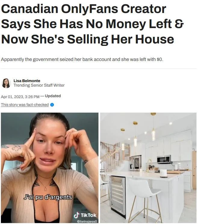 Jessica Massie 表示,由于她的收入来自于成人网站 OnlyFans,而