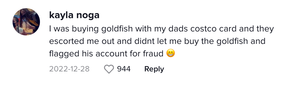 “我用我爸爸的卡买了Goldfish饼干,但他们把我赶出去,不让我买,还标记他的账户欺诈。”