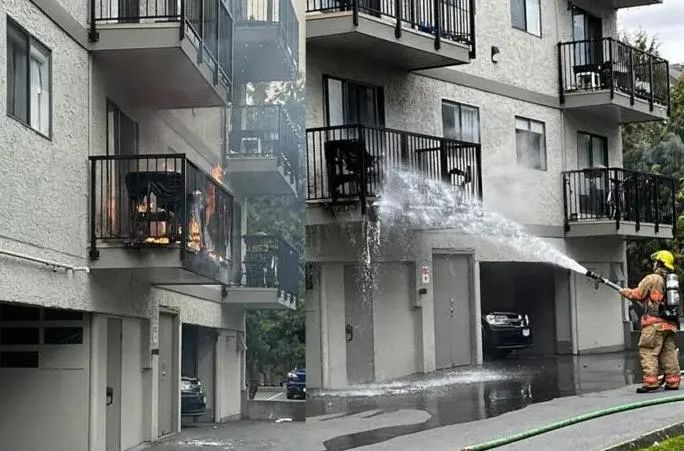据Victoria Buzz报道,事件发生在下午2:00左右,消防人员接报指Craigflower Road 的一栋公寓二楼有大火,消防人员赶到后,在公寓楼外以喷水方式灌救,但幸运的是,火势一直被控制在公寓外部,没有延烧到公寓内。