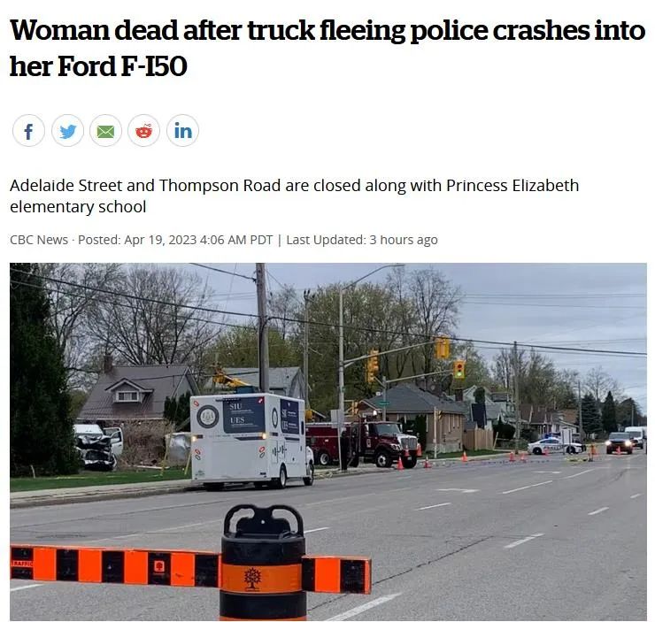 特别调查组(Special Investigations Unit ,SIU)表示,这场车祸导致 F-150 的女司机死亡。