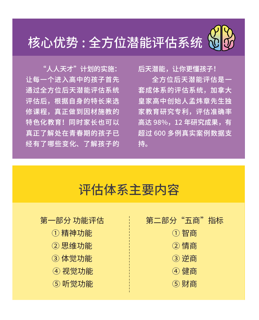 2、独家的后天潜能评估体系,让每一个学生。选对课程,选择专业。