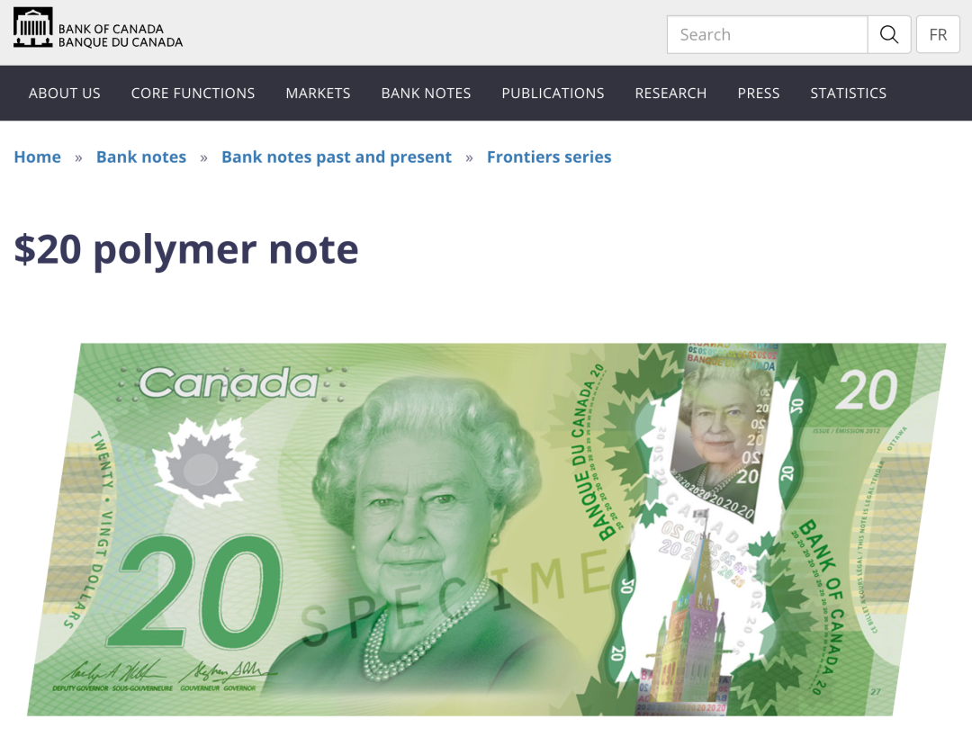 加拿大皇家铸币厂和中央银行分别自1908年和1935年就开始将在位君主形象印在纸币和硬币上。