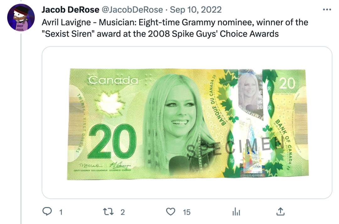 甚至还有加拿大人表示想用:贾斯汀·比伯(Justin Bieber),说唱歌手德雷克(Drake)、甚至加拿大摇滚乐对Nickelback的专辑图片。