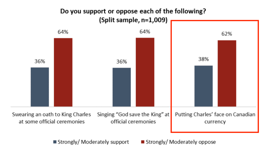 根据民调机构Angus Reid Institute最新一项调查发现,近90%的采访者希望进行改革以切断和英国王室的联系,40%的人表示他们不关心加冕典礼。超过62%的人不想在$20纸币上看到查尔斯的头像。