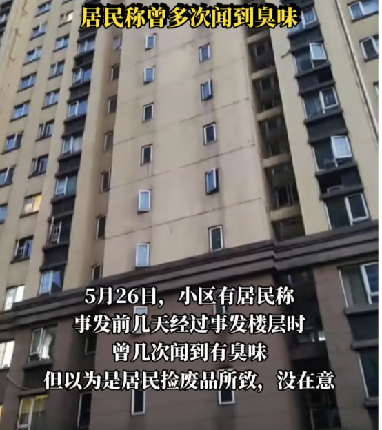 而在此前,就有业主反映,最近在这栋楼的附近,经常能闻到一阵阵臭味。