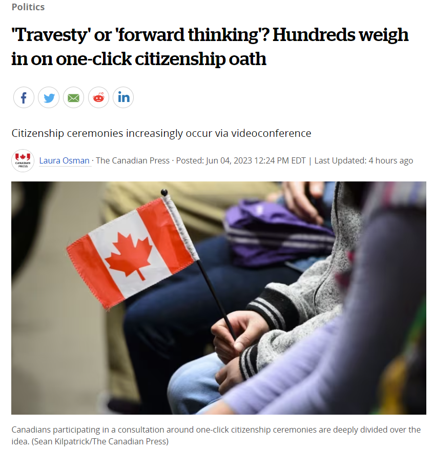 可没想到的是,在征集了广大加拿大人的意见后,现在这个方案已经成为了一个引人厌恶的改革,许多人认为它将大大降低入籍的仪式感并为网络诈骗打开大门。