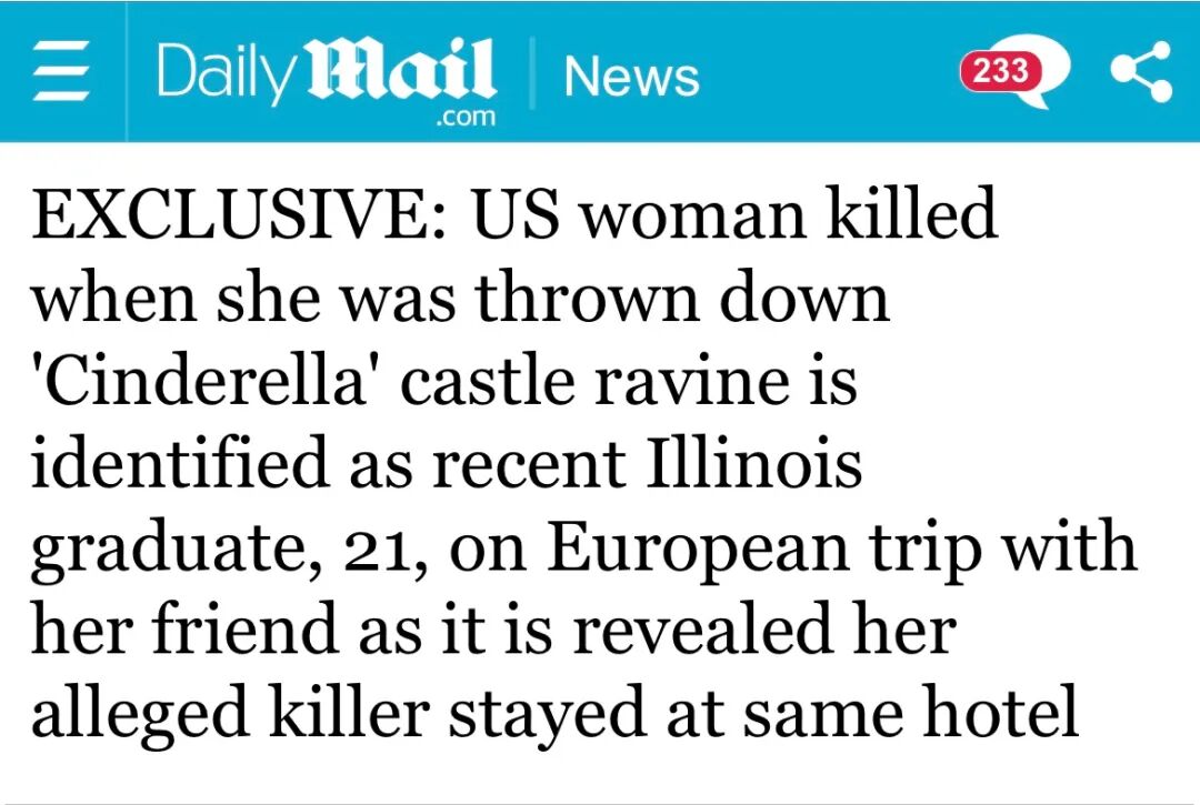 事发当时,Liu和Chang在穿越城堡附近的吊桥——Marienbrücke 桥时遇到了这名 30 岁的美国游客。