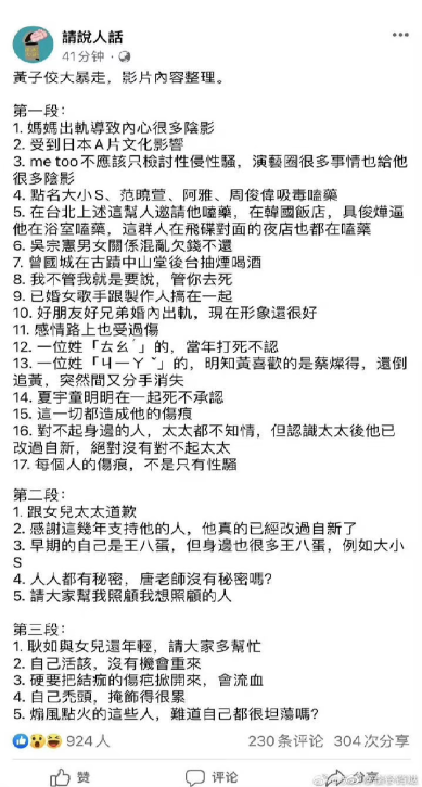 【加拿大乐活网lahoo.ca Gina综述】 近期有台湾网友在Facebook上爆料,在十多年前,她才17岁时曾被某知名男星性骚扰,被强吻还被拍了裸照。由于文中提到电台主持、音乐、有女儿等线索。不久就被眼尖的网友扒出这位男星居然就是主持人黄子佼。
