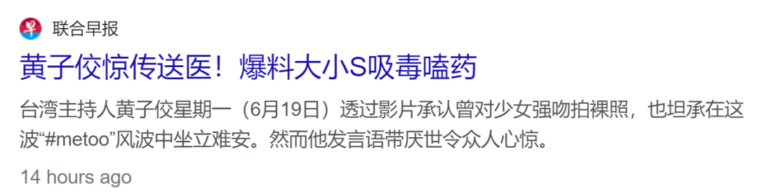 黄子佼又称,为什么大小S红了二十几年,就算被杂志拍到“嗑药”,只要否认就可以无事,包括她们身边的好朋友也都能逃过。“为什么她们就可以逃过这一切?为什么她们就可以若无其事地继续红下去?”
