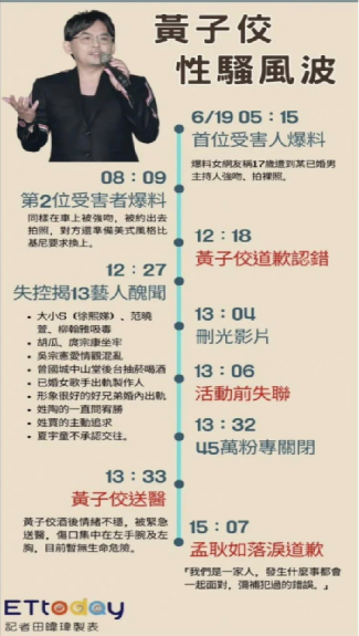 媒体Ettoday整理出的黄子佼事件时间线如下: