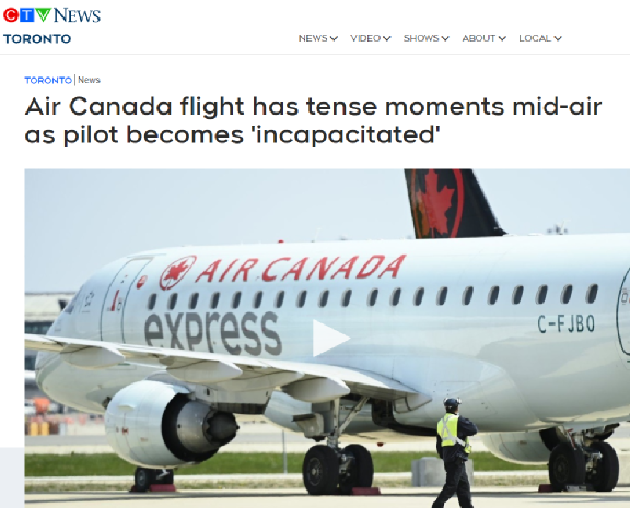 同天,在加拿大,加拿大交通监管机构也官宣确认了一起空中交通事故。本月早些时候从多伦多起飞的加拿大航空航班上的一名飞行员在飞行途中“丧失工作能力”。
