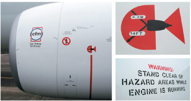 飞机引擎的半径14英尺(4.2米)以内是低气压区,当发动机开启时,人站在这个距离内很容易被吸进去。提醒大家在上下飞机时也要小心避开引擎部分,以免引发悲剧。