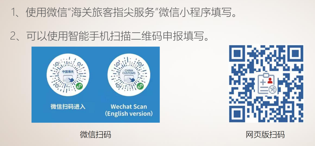 有计划的乘客可以参考国泰航空等航司的海关健康申明填报途径:使用微信“海关旅客指尖服务”微信小程序填写或扫码下方网页版二维码进行申报。