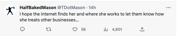 有网友说:“我希望网友们能找到她和她工作的地方,让老板知道她是如何对待其他商家的……”