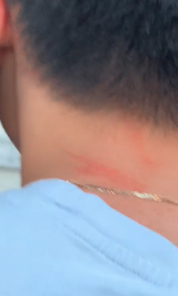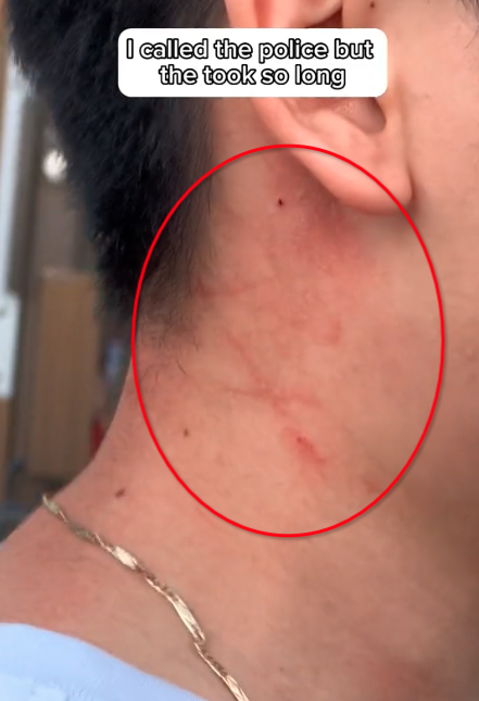 在整个视频中清晰可见的是,这位女士甚至一度将Vu扑倒在地,用她那双鲜艳的、刚在店做好的粉红色指甲,抓Vu的头部和颈部。