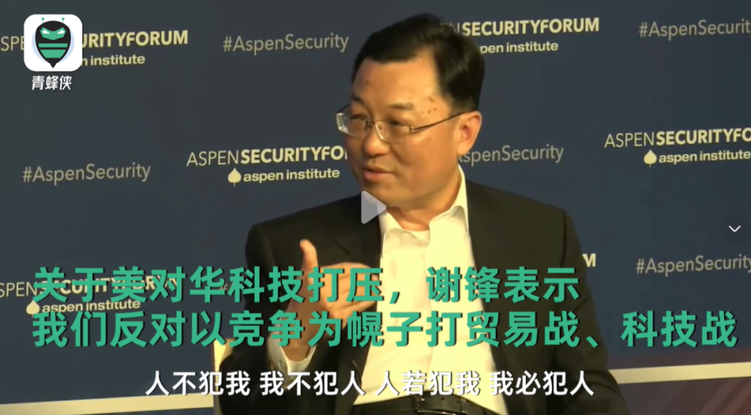 7月19日,中国驻美国大使谢锋参加阿斯彭安全论坛时,在遣词中用了两句非常重的话: