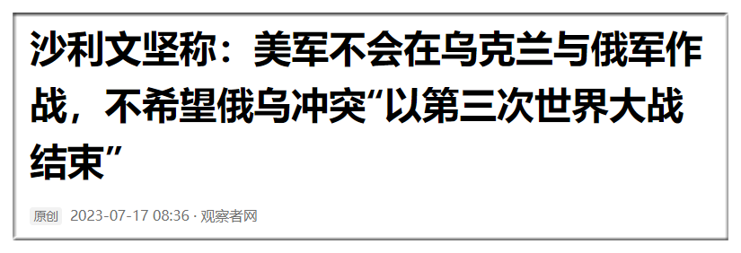 现在美元加息已经快结束了,沙利文说的很清楚,不想把俄乌冲突搞成第三次世界大战。很明显拜登要在俄乌冲突上面开始部分降温了。