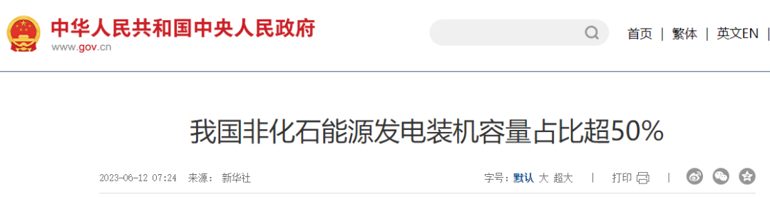 截止目前,我国非化石能源发电装机容量占全部装机比重达到50.9%,历史性超过化石能源。