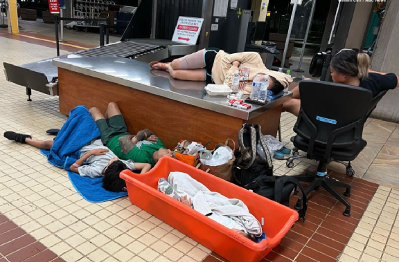 (被困机场的旅客 图片来源:Twitter 2023年8月10日)