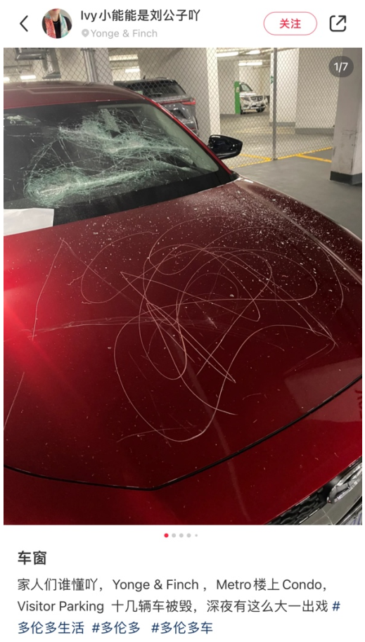 作者透露:据称砸车的歹徒是从Yonge/Sheppard一路向北砸到Finch!