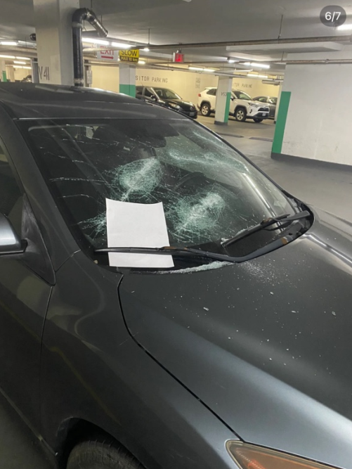 据网友@Ivy小能能是刘公子吖8月10发布,Yonge/Finch附近的Metro超市楼上公寓的访客停车区域(Visitor Parking)昨天深夜又有十几辆车被砸毁。