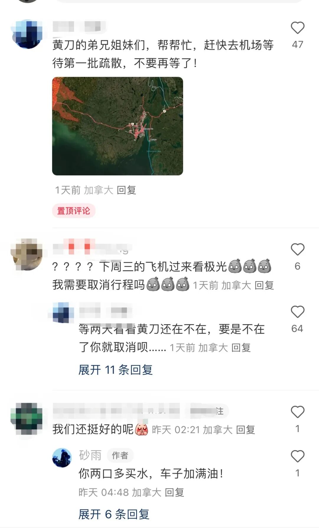 让我们祈祷黄刀的人们撤离路上一切平安!