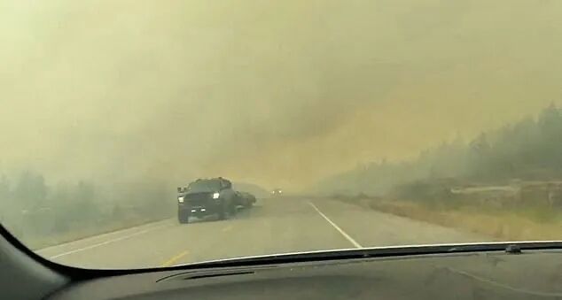 通过高速公路撤离的居民,如果一旦遭遇烟雾,政府将护送居民们穿越火区;