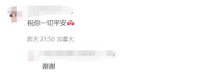 有网友在低下留言,“祝你一切平安。”