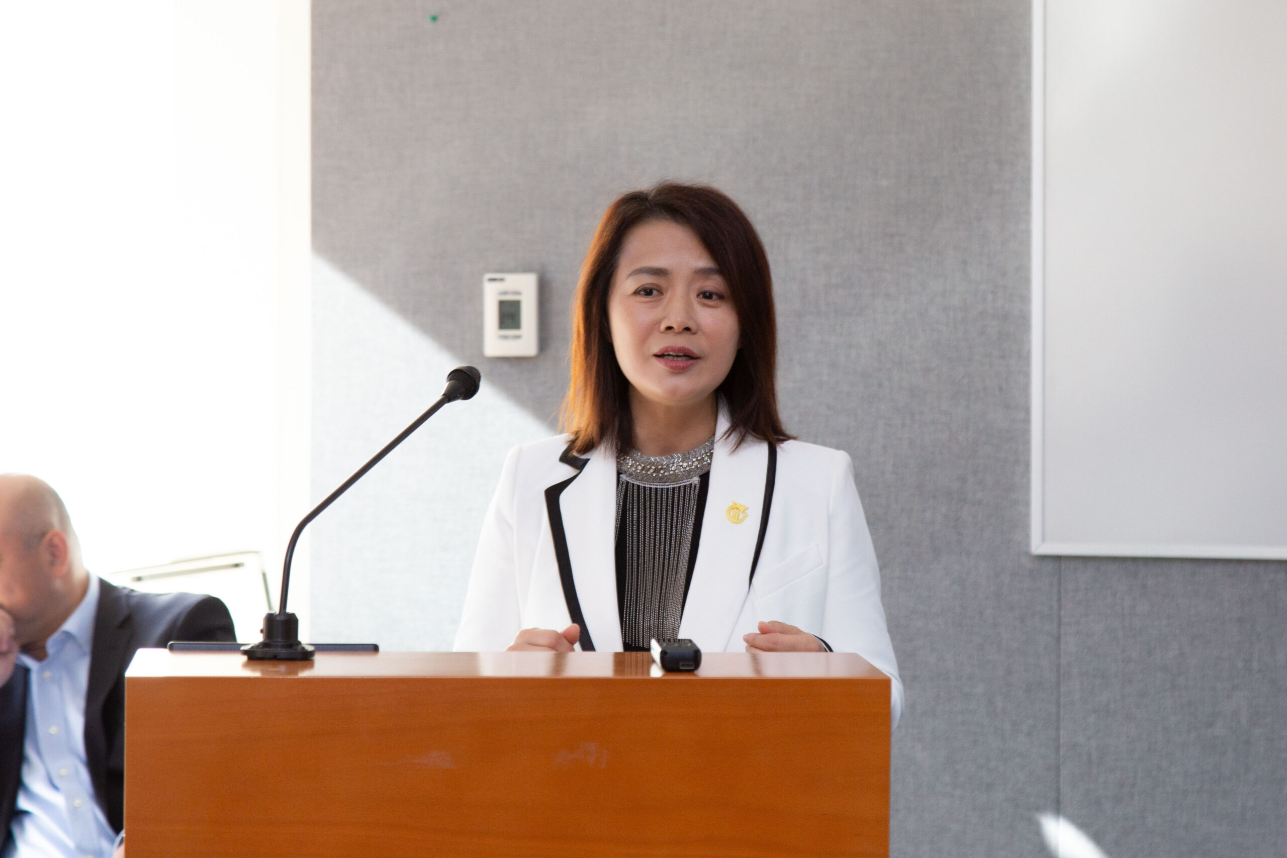 王白进议员首先表示非常高兴能参加这次新闻发布会并代表本拿比市长和市议会向大家表示热烈的祝贺。王白进提到他对英才音乐学院非常熟悉,他和其他议员多年来一直参与这类活动。他认为这次活动是非常重要的,因为多元文化是本地区的一个核心价值,而中华文化是这其中的重要部分。他期待此次音乐会将以民族形式为主,这将会是一个非常有意义的活动。王白进还提到他自己也是山西人,他对于“晋韵”的主题感到特别亲切,因为“晋”是山西的代称,带有乡音、乡情的意味,他衷心祝愿此次活动取得圆满的成功。