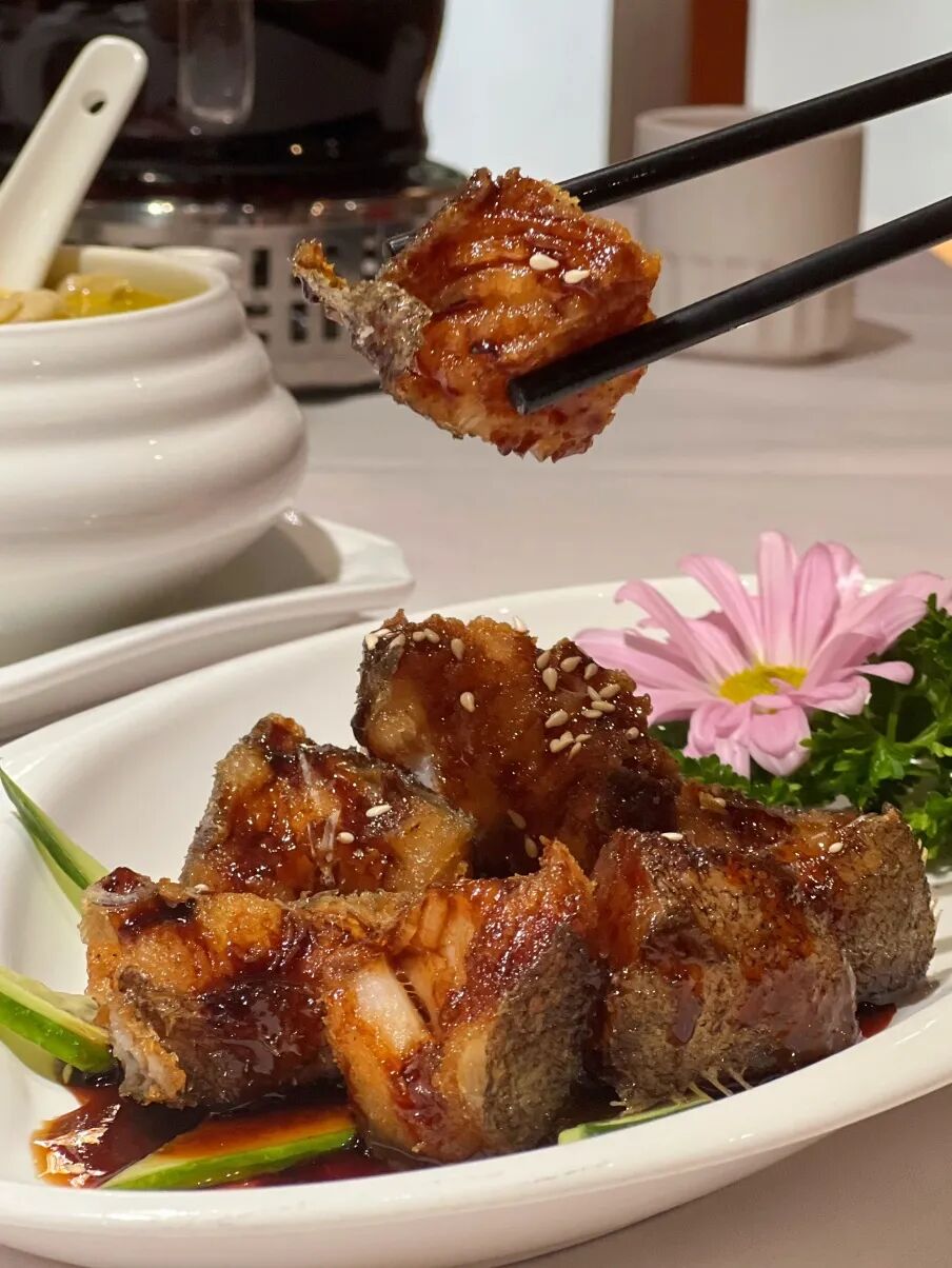浸了鲜甜的酱汁脆嫩中带着鱼皮的弹韧