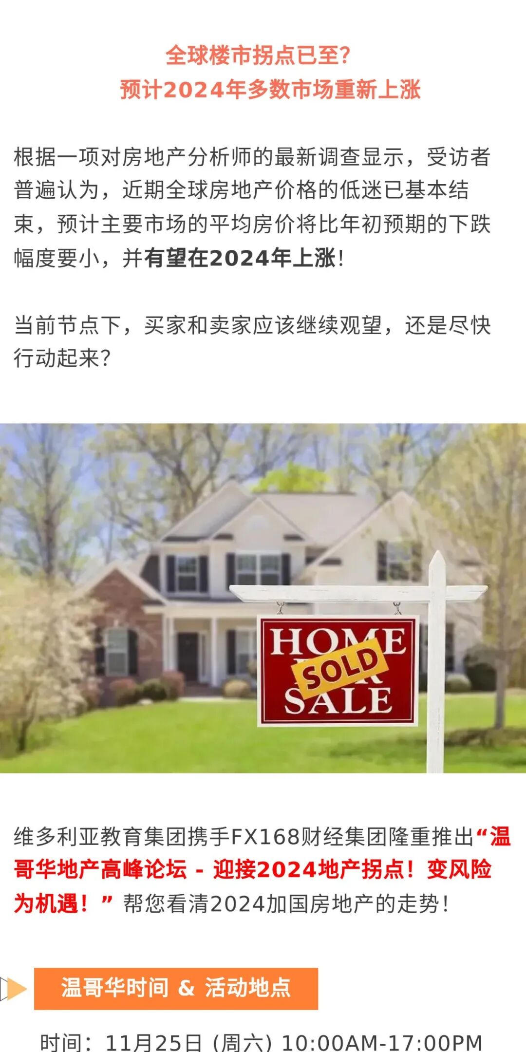 温哥华地产高峰论坛,迎接2024地产拐点,变风险为机遇!2023-11-15 |作者:Vancouverheadline | 来源:温哥华头条加拿大广告Loading...分享:#加拿大#广告#维多利亚教育集团 阅读 未经允许不得转载:加拿大乐活网 »温哥华地产高峰论坛,迎接2024地产拐点,变风险为机遇!分享: