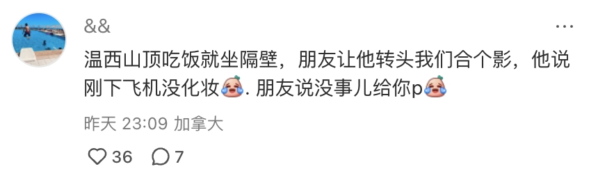 要知道,咱们撒老师可是正儿八经的加拿大女婿,这次来大温也是为了带孩子和家人团聚度假。