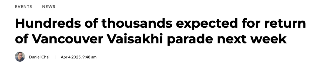 由卡尔萨迪万协会(Khalsa Diwan Society)主办的Vaisakhi Nagar Kirtan将于2025年4月12日(星期六)盛大举行。这场节日游行以色彩斑斓的大型花车、充满活力的社区表演、现场音乐和传统美食为特色,是温哥华每年最具规模和影响力的文化活动之一。