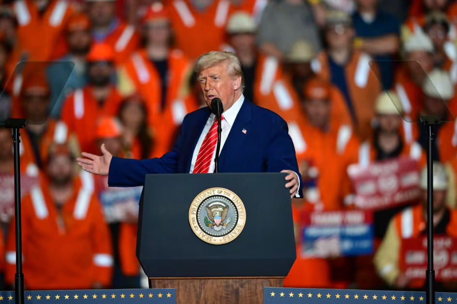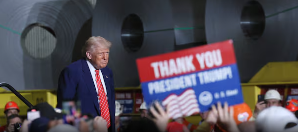 特朗普周五在匹兹堡附近的蒙谷欧文工厂(Mon Valley Irvin Plant)集会上表示,提高关税是“为了保护美国的钢铁工业安全”。他在演讲后在社交媒体发文称:“这对我们优秀的钢铁和铝工人来说,将是又一个重大好消息。”