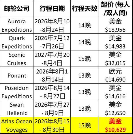 北极三岛邮轮价格对比