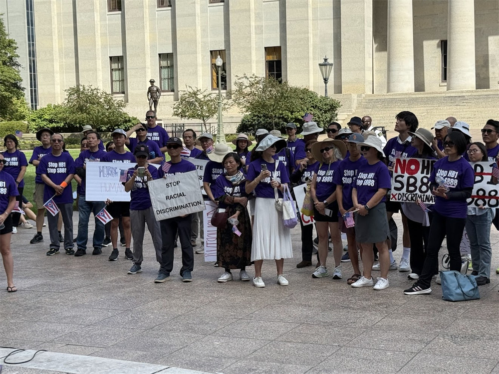 当天的抗议人群多元化,包括亚裔、白人、非裔、穆斯林以及教会领袖等各社区成员。他们指出,这些法案明显违反《联邦公平住房法》,后者明确禁止在购房过程中询问种族、族裔或国籍。尤其是SB88,还加入条款强迫现有房产持有者若属“受限人群”,必须在两年内出售房产。HB1与SB88还将禁止任何由“受限人员”控制的俄亥俄企业,或总部设在所谓“外国对手”国家的企业在俄州拥有房地产。