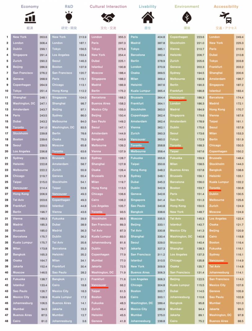 据Postmedia报道,“全球最具吸引力城市指数”调查是由日本森纪念基金会城市战略研究所每年编制,指数使用包括经济、研究与开发、文化融合、宜居、环境、交通在内的70项指标,对全球48个城市进行排名。