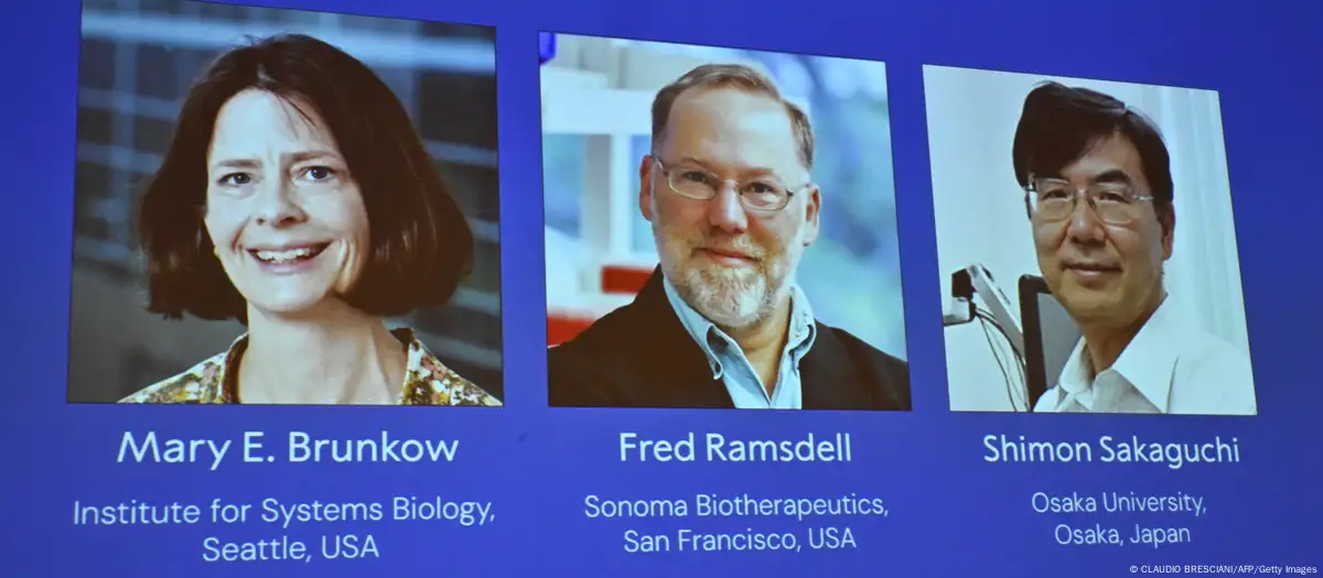 (德国之声中文网)当地时间10月6日,瑞典卡罗琳医学院宣布,将2025年诺贝尔生理学或医学奖授予科学家玛丽·E·布伦科(Mary E. Brunkow)、弗雷德·拉姆斯德尔(Fred Ramsdell)和坂口志文(Shimon Sakaguchi),以表彰他们在免疫系统调控机制方面的研究成果。