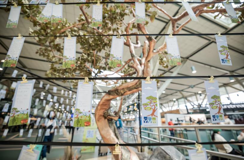 所以起飞前,不妨在国际出发大厅的 11 英尺高的金色杨梅树旁驻足。拿一块许愿牌,记下你感激的事情,也花点时间阅读其他旅客留下的真诚留言。