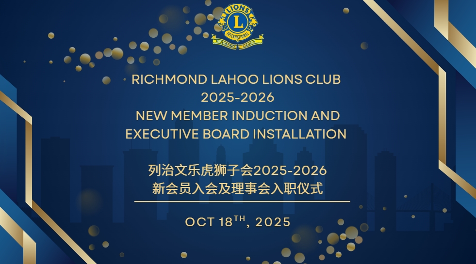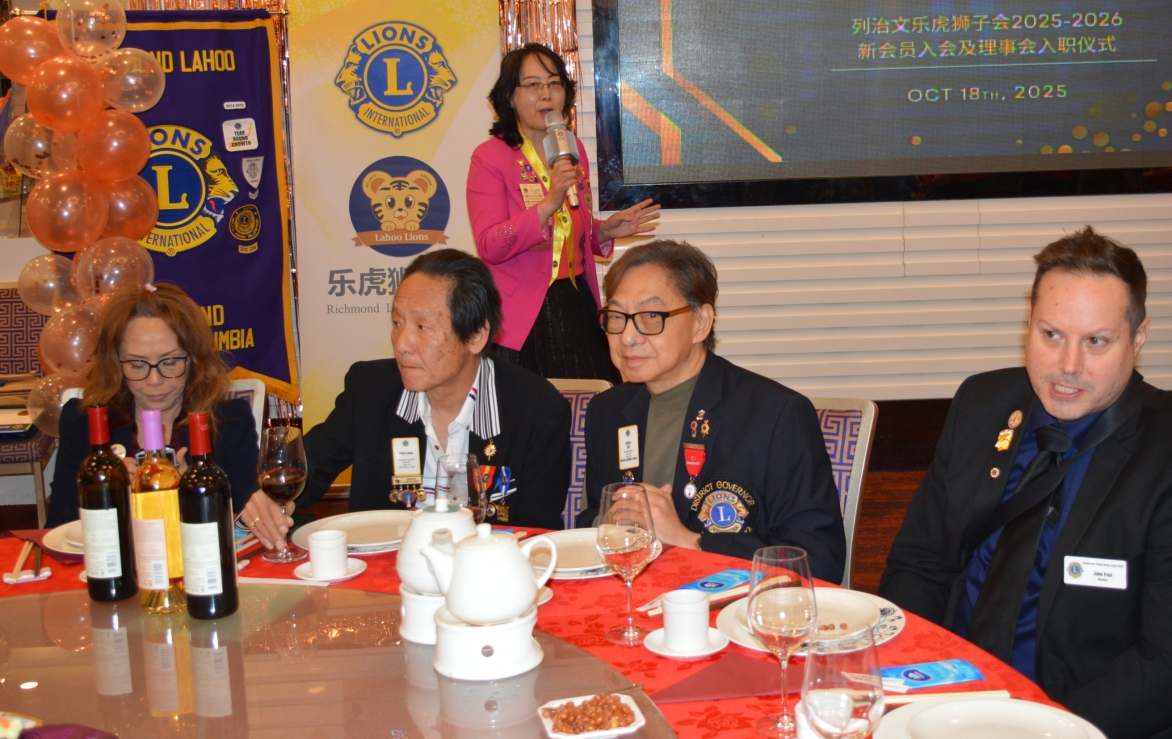 【加拿大乐活网Lahoo.ca 叶之秋文字报道】2025年10月18日晚,列治文乐虎狮子会2025-2026年度理事会成立仪式与新会员入会仪式,在列治文颐东大酒楼隆重举行,今年狮子会(与旗下的青狮会)各项活动也为BC省儿童临终关怀医院(Canuck Place Children’s Hospice)筹款,到今年夏季已经捐了二万多元的善款,用来帮助严重病童。