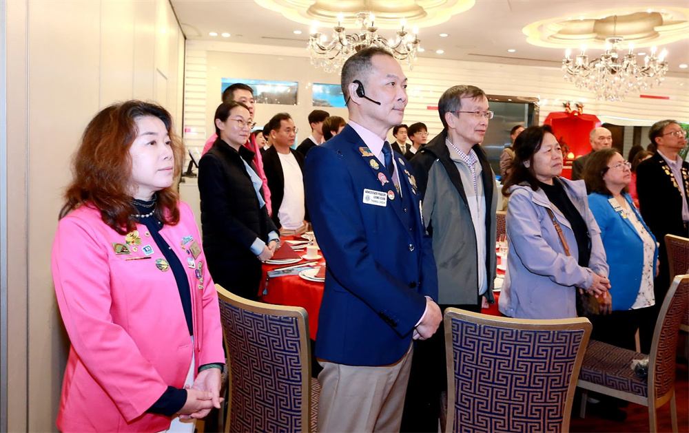 在晚宴之后,是介绍2025-2026列治文乐虎狮子会新会员入会仪式,由19H大区前总监Steven Wong带领大家宣誓,期望大家齐心协调各狮子会的活动,促进世界各民族相互理解的精神,增进友谊。